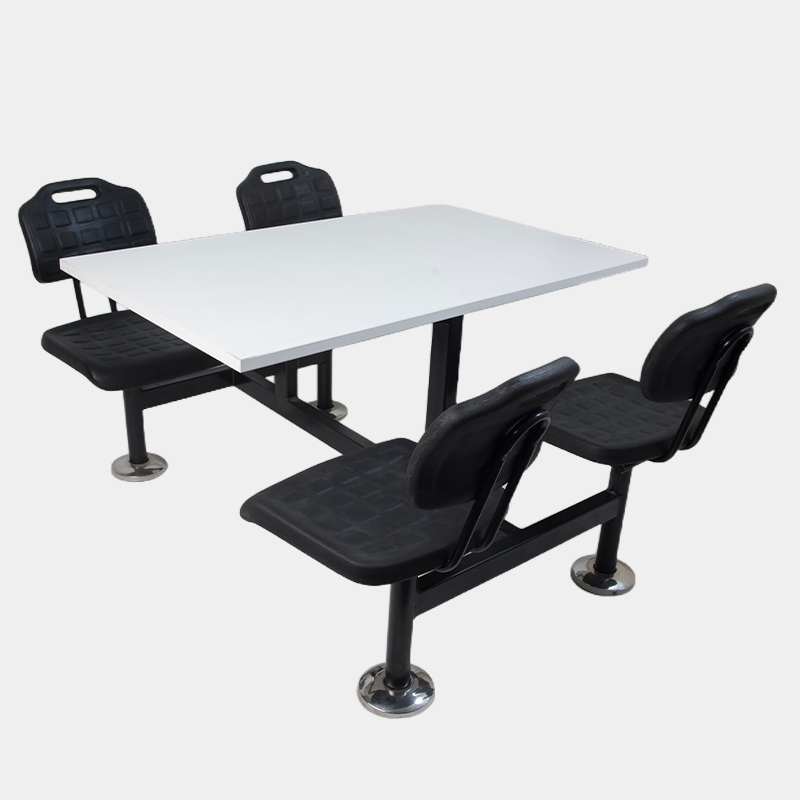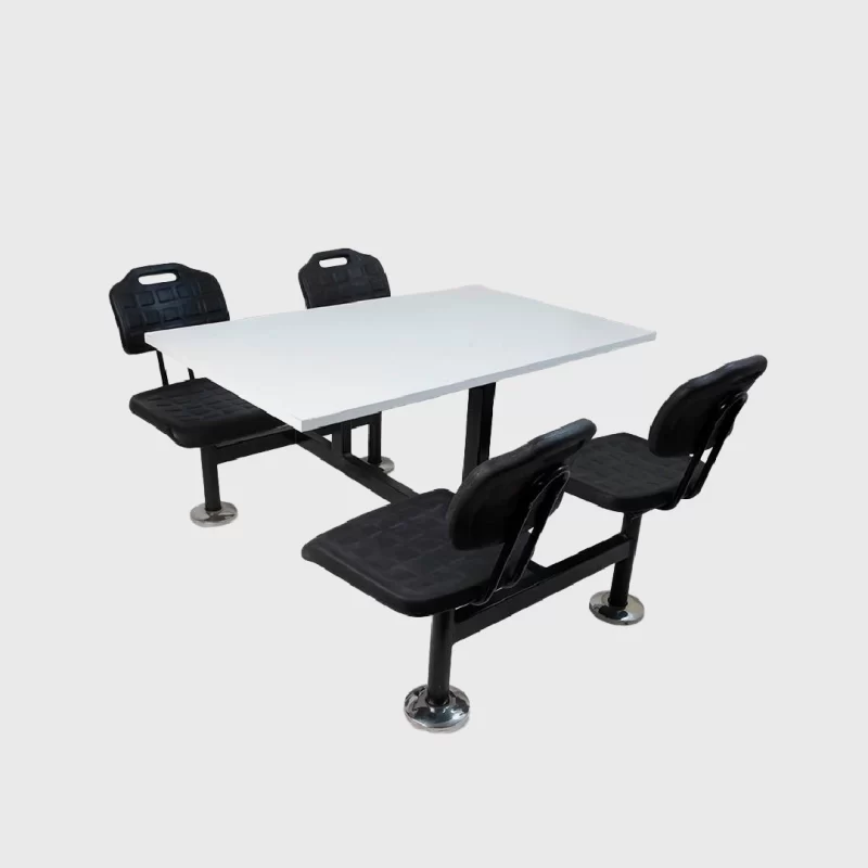 Mesa Mix para amurar al suelo con 4 sillas ergonómicas con respaldo fijo, asiento giratorio y con mecanismo de deslizamiento.