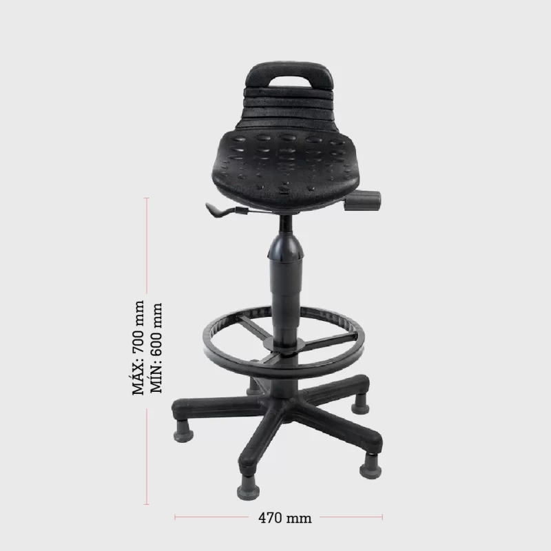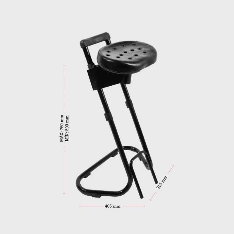 Taburete ergonómico para posición Parado / Apoyado / Sentado. Son productos que poseen características especiales. Puede tener solo regatones.